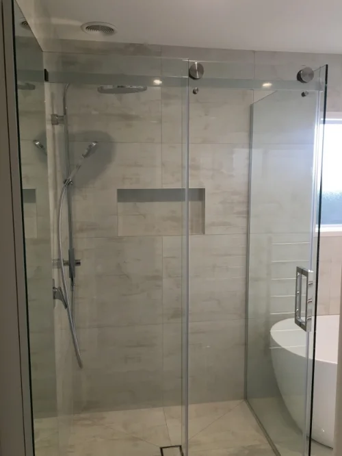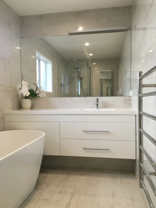 Here are some images from a bathroom we've just finished in Hauraki. We installed a custom designed wall to wall vanity with 50mm thick Corian benchtop and undermount basin. Tiles are 600 x 600 Metro White gloss from Tile Depot and are laid full height to ceiling. Last pic shows the custom frameless sliding shower which we're using a lot now and are a great space saving option. The client is delighted with her new bathroom and has already been showing it off to friends!